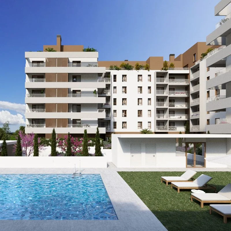 Proyecto de 103 viviendas plurifamiliares con jardín y piscina, garaje, trasteros y local comunitario.
