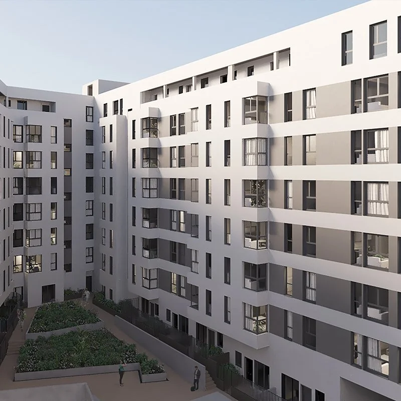 Proyecto de 139 viviendas de alquiler asequible. Programa colaboración público-privada Vivienda colectiva en manzana cerrada con garajes, trasteros, jardín y espacios comunitarios.