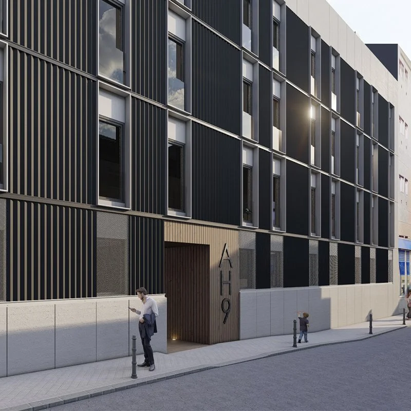Proyecto de 79 plazas de coliving con piscina y local comunitario.